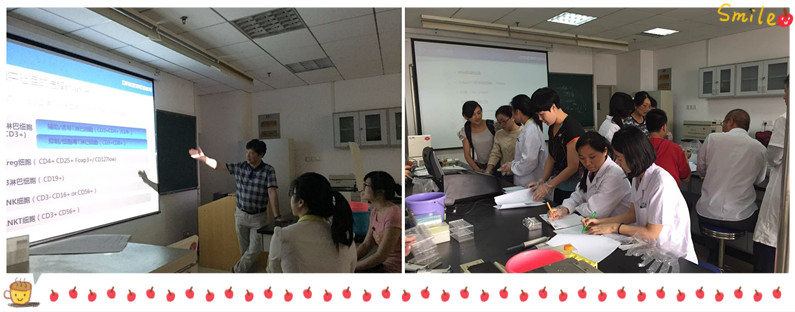 流式上機培訓上午8點半開始,首先由華中科技大學同濟醫(yī)學院免疫系梁智輝老師為大家詳細介紹了本次實驗的相關內容,包括:檢測人外周血中的T/B/NK/NKT/Treg的marker的選擇、panel設置、對照選擇/設置,protocol染色操作及注意事項,流式操作標準化之抗體稀釋等。