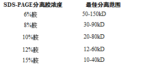 不同濃度凝膠對應的合適分離范圍