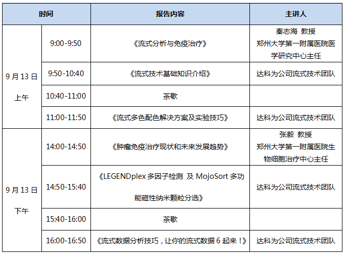 金秋九月,達科為流式培訓班要來鄭州啦,名師講解,理論與實驗雙管齊下,輕松完成流式八色檢測分析,更有LEGENDplexTM多因子Demo演示,磁珠分選Demo以及De Novo 流式軟件數(shù)據(jù)分析演示。流式上機名額有限,歡迎踴躍報名!理論培訓和實驗操作均免費喲!