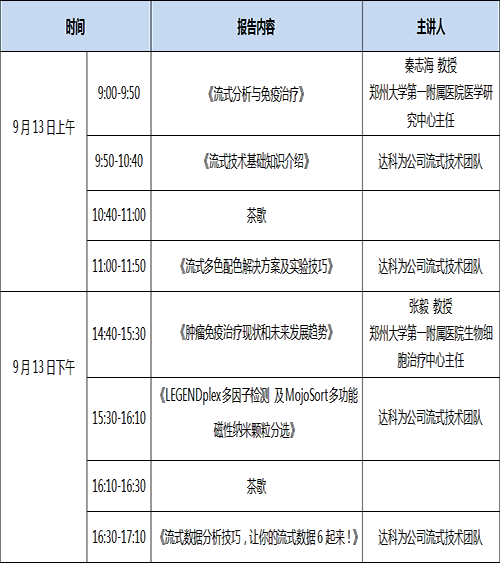 金秋九月,達(dá)科為流式培訓(xùn)班要來鄭州啦,名師講解,理論與實(shí)驗(yàn)雙管齊下,輕松完成流式八色檢測(cè)分析,更有LEGENDplexTM多因子Demo演示,磁珠分選Demo以及De Novo 流式軟件數(shù)據(jù)分析演示。流式上機(jī)名額有限,歡迎踴躍報(bào)名!