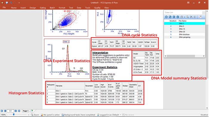 ? 演示內(nèi)容:細(xì)胞周期數(shù)據(jù)的分析,關(guān)于細(xì)胞周期各個(gè)參數(shù)的調(diào)用,統(tǒng)計(jì)學(xué)圖表的建立