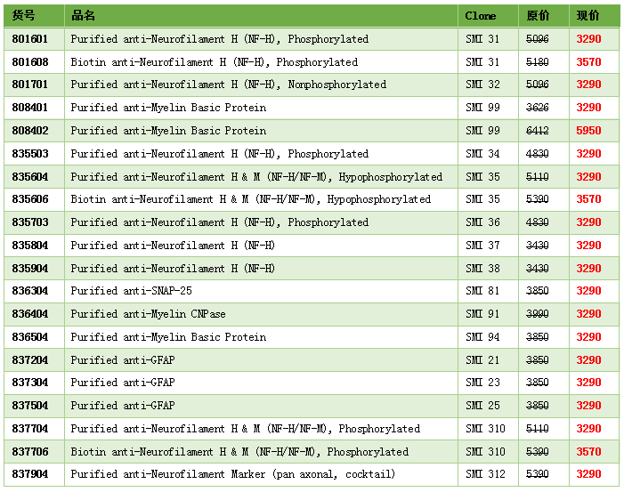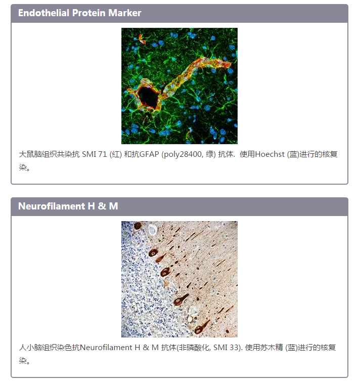 SMI?克隆號(hào)系列抗體是BioLegend 旗下品牌 Covance非常重要而知名的產(chǎn)品線,被業(yè)內(nèi)譽(yù)為研究神經(jīng)細(xì)胞特異marker的金標(biāo)準(zhǔn)。
