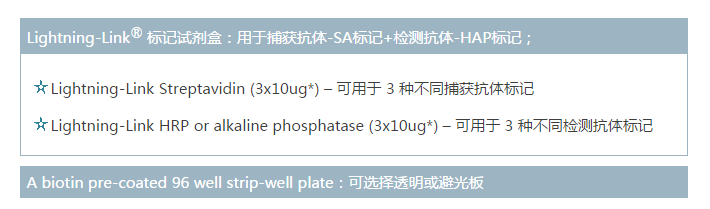 只需自備標(biāo)準(zhǔn)品、抗體對(duì)和HRP/AP檢測(cè)試劑,輕松制備ELISA。