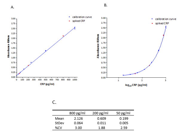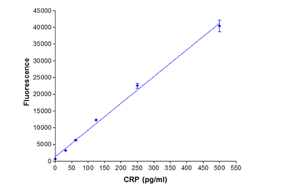 1. 使用LL-HRP標(biāo)記CRP檢測(cè)抗體并使用CRP標(biāo)準(zhǔn)品做校準(zhǔn)曲線的ELISA檢測(cè);