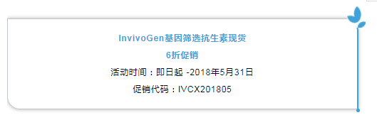 達(dá)科為生物是InvivoGen公司在中國(guó)的一級(jí)代理,并且和InvivoGen一直都有良好的合作,達(dá)科為準(zhǔn)備了大量InvivoGen篩選抗生素現(xiàn)貨,即日起篩選抗生素下列現(xiàn)貨參加6折促銷(xiāo)活動(dòng):