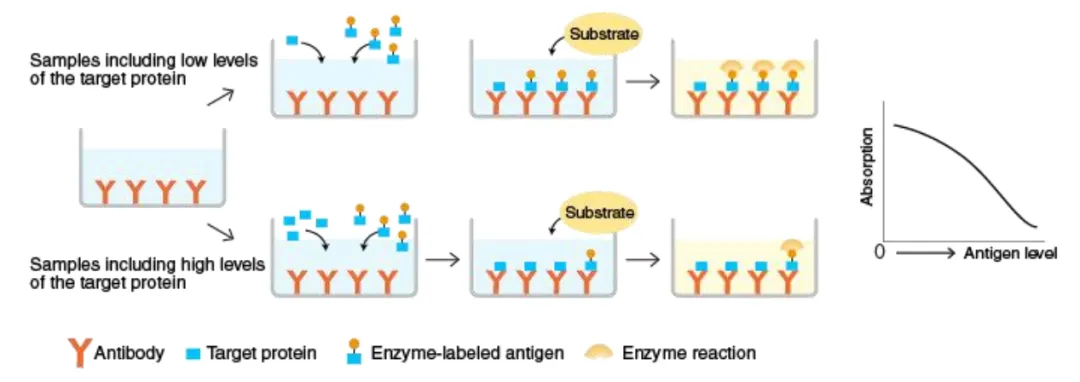 1、樣本中分析物水平較低可以使用哪些方法改進(jìn)檢測(cè)?通過(guò)增加洗滌次數(shù)和兩次洗滌之間的浸泡時(shí)間降低背景。控制測(cè)定精確度。例如,在移液時(shí)要更加小心和一致,使用干凈的紙巾拍板,以避免污染。增加孵育時(shí)間。但這通常也會(huì)增加背景,因此檢測(cè)靈敏度不一定會(huì)增加。如果可以的話,建議濃縮樣本。使用5-PL曲線擬合方法,更準(zhǔn)確地計(jì)算標(biāo)準(zhǔn)曲線下端的樣本濃度。在大多數(shù)情況下,樣本可能只含有非常低或無(wú)法檢測(cè)到的分析物水平。這時(shí)無(wú)論如何操作和測(cè)定,仍然無(wú)法檢測(cè)到準(zhǔn)確濃度。2、包板應(yīng)如何存放?如果包被完抗體的板不能立即使用,應(yīng)將其密封并在4°C儲(chǔ)存過(guò)夜。3、為什么使用同一克隆號(hào)的捕獲抗體和檢測(cè)抗體建立ELISA實(shí)驗(yàn)沒(méi)有成功?如果使用相同的克隆抗體進(jìn)行檢測(cè)和捕獲,則抗原表位可能已經(jīng)被其中一種抗體占據(jù)并抑制另一抗體結(jié)合。建議捕獲和檢測(cè)抗體選擇不同的克隆號(hào)。4、應(yīng)該使用哪種包被緩沖液?一般來(lái)說(shuō),建議使用PBS(pH 7.4)或碳酸鹽緩沖液(pH 9.5)。確切的包被緩沖液可能取決于要檢測(cè)的細(xì)胞因子。5、為什么細(xì)胞因子流式染色與ELISA測(cè)定之間沒(méi)有良好的相關(guān)性?流式細(xì)胞術(shù)檢測(cè)的胞內(nèi)細(xì)胞因子代表檢測(cè)時(shí)的陽(yáng)性細(xì)胞比例,ELISA代表細(xì)胞因子隨時(shí)間的積累量。可能少量的陽(yáng)性細(xì)胞在一段時(shí)間之后會(huì)分泌大量的細(xì)胞因子于培養(yǎng)上清中,導(dǎo)致ELISA的結(jié)果與胞內(nèi)因子染色的結(jié)果不一致6、可以使用細(xì)胞培養(yǎng)板進(jìn)行ELISA實(shí)驗(yàn)嗎?不可以。細(xì)胞培養(yǎng)板設(shè)計(jì)用于達(dá)到細(xì)胞培養(yǎng)目的,通常不具有高蛋白結(jié)合能力。對(duì)于ELISA,建議使用具有高蛋白結(jié)合能力的板,例如 Nunc Maxisorp?酶標(biāo)板。7、血清等樣本可以重復(fù)使用嗎?不建議重復(fù)使用樣本。為了獲得準(zhǔn)確的結(jié)果,樣本應(yīng)分裝儲(chǔ)存,僅供一次性使用。如果重復(fù)使用樣本,需要進(jìn)行額外的驗(yàn)證實(shí)驗(yàn),以確保實(shí)驗(yàn)準(zhǔn)確性。8、在什么步驟中,可以暫停ELISA實(shí)驗(yàn)?可以冷凍板子以備后用嗎?最好遵循說(shuō)明書操作,沒(méi)有任何可以暫停實(shí)驗(yàn)的步驟。但是,如果一定需要暫停實(shí)驗(yàn),建議在封閉步驟(包被捕獲抗體后)??梢栽诳字屑尤?00 μL封閉緩沖液,并將板在4°C過(guò)夜(信號(hào)損失最小或沒(méi)有)或在-20°C冷凍幾天(可能會(huì)對(duì)信號(hào)產(chǎn)生一些影響)。不建議在第一步進(jìn)行(在4°C用捕獲抗體包被超過(guò)16-20小時(shí)),因?yàn)榭赡軙?huì)導(dǎo)致高背景。9、包被捕獲抗體可以超過(guò)過(guò)夜的時(shí)間嗎?通常來(lái)說(shuō),建議在4°C包被16-20小時(shí)。較長(zhǎng)的孵育時(shí)間可能會(huì)增加與板結(jié)合的捕獲抗體量,會(huì)增加背景。10、培養(yǎng)基中的酚紅會(huì)干擾ELISA測(cè)定嗎?不會(huì),培養(yǎng)基中酚紅的吸光度可以在計(jì)算時(shí),通過(guò)扣除空白孔中本底的吸光度而消去,因此不會(huì)干擾ELISA測(cè)定的讀數(shù)。11、對(duì)于一些ELISA試劑盒,為什么血清樣本需要稀釋?血清樣本稀釋可以盡量減少樣本和標(biāo)準(zhǔn)品之間的基質(zhì)差異,以獲得更加準(zhǔn)確的結(jié)果。12、如何提高ELISA檢測(cè)獲得更好的信號(hào)和靈敏度?增加孵育時(shí)間,但這也可能會(huì)增加檢測(cè)的背景,同時(shí)不改變靈敏度。在孵育步驟中搖動(dòng)板子。確保標(biāo)準(zhǔn)品在使用前完全溶解。在兩次洗滌之間增加浸泡時(shí)間,以進(jìn)一步降低背景。如果可以的話,在450-570 nm處讀板以減去本底。通過(guò)控制移液誤差或使用更大體積的洗滌緩沖液洗滌來(lái)改善CV值。使用5-PL或4-PL曲線擬合方法,而不是線性曲線擬合。