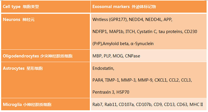 BioLegend公司可提供針對(duì)多種靶蛋白的抗體,可以鑒定來(lái)自中樞神經(jīng)系統(tǒng)中各種細(xì)胞類型的外泌體。